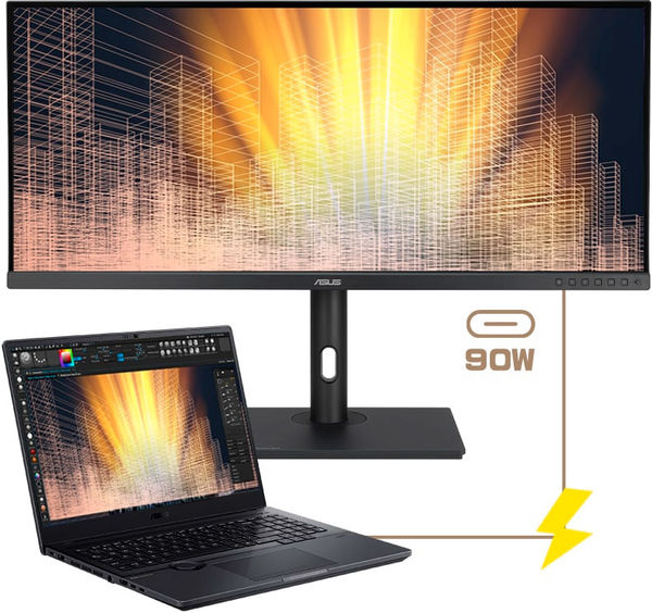 L'écran Asus ProArt PA348CGV est un moniteur professionnel de 86 cm de diagonale (34 pouces) équipé d'une dalle LCD IPS 21:9 en définition QHD (3440 x 1440). Destiné principalement à la création graphique et à l'édition photo et vidéo, il offre une extrême précision des couleurs grâce à son calibrage en usine (vérifié par Calman) et son large espace colorimétrique. Compatible 120 Hz en USB-C, il s'offre même la compatibilité FreeSync Premium Pro pour satisfaire aux aspirations des joueurs les plus exigeants. À cela s'ajoutent une ergonomie complète, une connectivité étendue avec recharge 90 W sur USB-C et même la certification Vesa DisplayHDR 400. L'écran Asus ProArt PA348CGV se montre ainsi non seulement excellent pour la création numérique mais également pour le gaming ainsi que le visionnage des films en HDR.