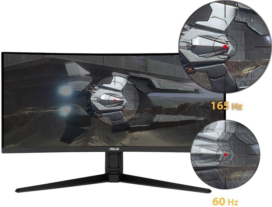 L'écran Asus VG34VQL1B profite d'une fréquence de rafraîchissement de 165 Hz pour supprimer le flou cinétique, afficher des images nettes et sans latence. L'écran se veut donc idéal pour les jeux de course, FPS ou de stratégie.