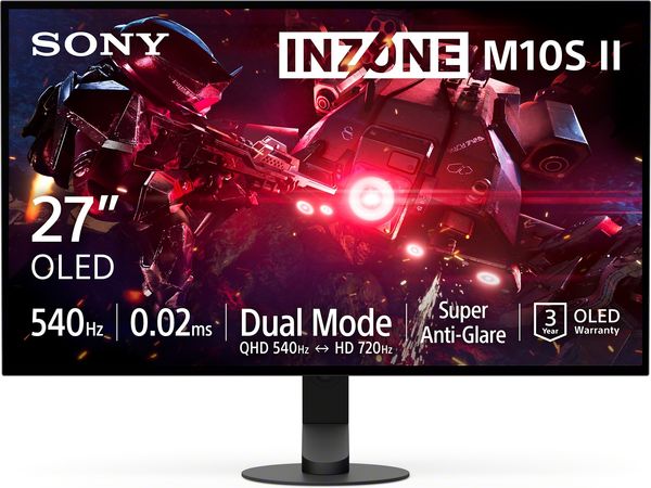 Pensé pour les joueurs les plus exigeants, l’écran gaming Sony INZONE M10S II s’appuie sur une dalle OLED de 26,5 pouces, soit 67,3 cm, avec un format 16:9 parfaitement adapté aux usages gaming modernes. Il affiche une définition QHD de 2560 x 1440 pixels, offrant un excellent équilibre entre précision visuelle et performances. Son atout principal réside dans son taux de rafraîchissement extrêmement élevé, atteignant 540 Hz via DisplayPort, avec une extension possible jusqu’à 720 Hz en HD, ce qui en fait un écran de jeu résolument orienté vers la compétition.