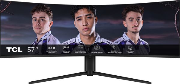 Le TCL 57R94 est un écran professionnel ultrawide qui s’impose par ses dimensions et ses caractéristiques techniques hors normes. Il embarque une dalle incurvée Fast-HVA Mini LED avec Quantum Dot de 57 pouces (145 cm), dans un format 32:9, affichant une définition DUHD de 7680 x 2160 pixels. Ce moniteur de jeu profite également d’un taux de rafraîchissement de 120 Hz, gage d’une grande fluidité, notamment dans les jeux rapides et pour les applications multitâches intensives.
