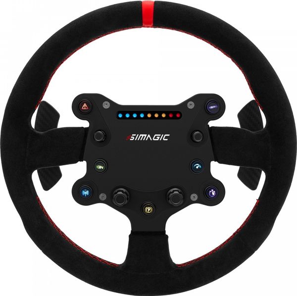 Avec ses nombreux contrôles intégrés, le volant gaming Simagic GTS offre une interface complète directement accessible depuis le volant. Il dispose de 7 boutons RGB personnalisables, de deux encodeurs rotatifs ainsi que de deux switches multi-positions à 7 directions. Cette richesse fonctionnelle permet de gérer facilement les réglages en course, comme les stratégies, les aides ou les paramètres du véhicule. À cela s’ajoute un système de LEDs avec 9 indicateurs de régime moteur, apportant un retour visuel précis et immersif. Dans un contexte de simracing, ces éléments contribuent à renforcer l’immersion et à améliorer la réactivité du pilote.