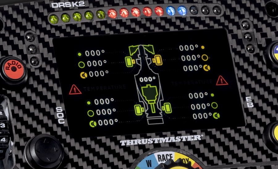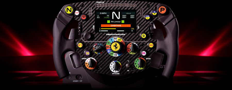 Ultime conception issu de la collaboration entre Thrustmaster et Ferrari depuis plusieurs décennies, le volant Thrustmaster SF1000 est la réplique à échelle 1:1 du volant de la mythique monoplace éponyme. Le volant présente jusqu’à 25 boutons d’action dont 11 boutons aux repères et marquages iconiques (oil, radio ou drink) pour une immersion totale. Les 7 encodeurs situés aux niveaux des pouces, de l’écran et de la partie inférieure du volant facilitent l’attribution des commandes ainsi que l’intuition du pilotage lors des réglages en course.