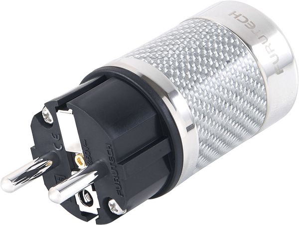 La fiche de connexion électrique IECC15 Furutech FI-E50NCF(R) issue de la gamme Pure Transmission FI-50 NCF de Furutech fait appel à plusieurs techniques de construction révolutionnaires. Elle adopte ainsi une coque multicouche en acier inoxydable non magnétique et en fibre de carbone plaqué argent qui incorpore un copolymère d'acétal spécial, amortissant et isolant. Furutech a choisi l'acier inoxydable et les fibres de carbone avec placage argent pour le boîtier extérieur de cette prise après de longues sessions d'écoute avec des personnalités de l'industrie japonaise et des audiophiles.