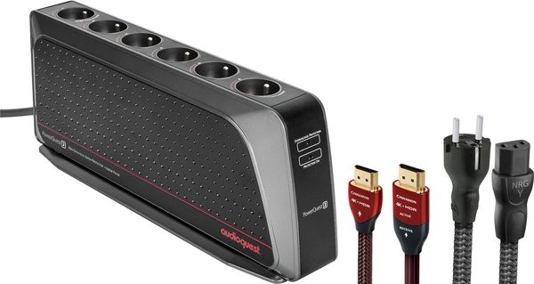 Le conditionneur secteur Audioquest PowerQuest 2 constitue une parfaite solution pour sereinement alimenter chaque élément de votre système home-cinéma sans craindre les surtensions. Les câbles Audioquest NRG-Y3 et Audioquest Cinnamon assurent alors une parfaite alimentation et liaison de la source au téléviseur ou vidéoprojecteur 4K / 8K. Ce faisant, vos appareils fonctionnent mieux et délivrent un son et une image de meilleure qualité.