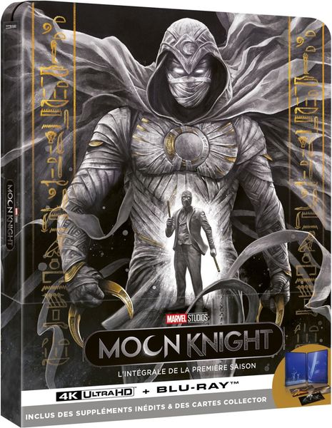 Découvrez le coffret Steelbook édition limitée 4 disques de la première saison de Moon Knight. Pour la première fois, l'histoire du super-héros issu des Comics Marvel est portée à l'écran. Produite par Marvel Studios et diffusée sur la plateforme Disney+ en 2022, la mini-série de six épisodes intègre au casting Oscar Isaac, Ethan Hawke et May Calamawy.