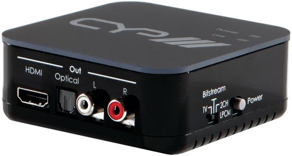 L'extracteur HDMI CYP AU-11CD permet d'extraire la piste sonore d'un câble HDMI pour la transmettre vers une sortie numérique optique ou analogique RCA. L'extracteur HDMI est ainsi idéal pour bénéficier des pistes sonores d'une source HDMI sur un appareil dépourvu d'une entrée HDMI comme un ampli hi-fi, un DAC ou encore un ancien amplificateur home-cinéma.