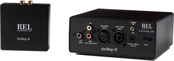 Le module émetteur du REL Acoustics AirShip II dispose d’un éventail complet de connexions : une entrée haut niveau via connecteur Neutrik Speakon, des entrées bas niveau en RCA (gauche/droite), une entrée .1/LFE en RCA, ainsi qu'une entrée .1/LFE symétrique en XLR. Cette diversité de connexions lui permet de s’adapter aussi bien à une installation stéréo classique qu’à un système home-cinéma complexe. L’utilisateur peut transmettre simultanément les signaux haut niveau et .1/LFE, une configuration idéale pour exploiter au maximum les capacités des subwoofers REL dans des environnements audiophiles comme cinématographiques:contentReference[oaicite:2]{index=2}.