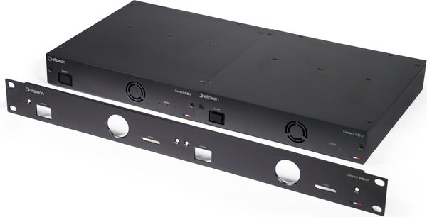 La façade rack 1U Elipson Connect 2130 Xi conçue pour accueilir jusqu’à deux amplificateurs Elipson Connect 2130 Xi adopte un format standard avec des dimensions de 482 mm de largeur pour 45 mm de hauteur. Ce format permet une intégration directe dans une baie technique, en cohérence avec les équipements rackables. Sa faible profondeur de 6 mm limite l’encombrement en façade tout en assurant le maintien des amplificateurs.