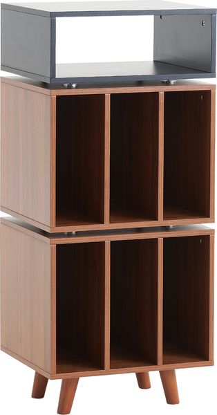 La partie inférieure du meuble est spécifiquement étudiée pour l'archivage de vos 33 tours, avec une étagère capable de soutenir jusqu'à 30 kg de disques. Deux espaces scindés en trois compartiments verticaux permettent d'organiser environ 80 vinyles tout en les maintenant parfaitement droits.