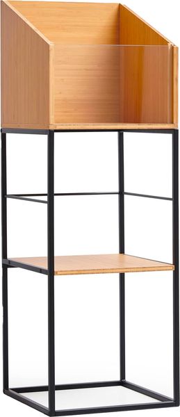 Il doit sa robustesse à sa structure en métal et ses panneau en bambou. Pratique, le rangement supérieur type disquaire avec face avant en verre et système d’exposition favorise la mise en avant d'une pochette.