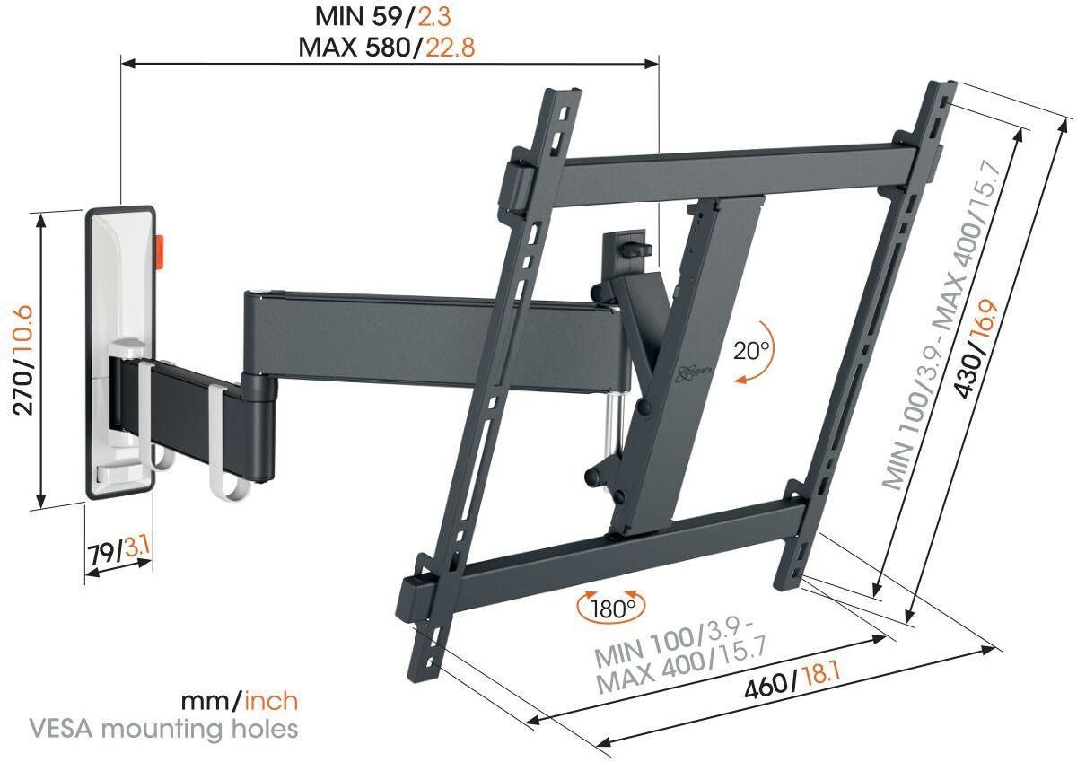 Très complet, le support Vogel's TVM 3442 permet l'inclinaison et la rotation du téléviseur 32" à 65" en toute sécurité.
