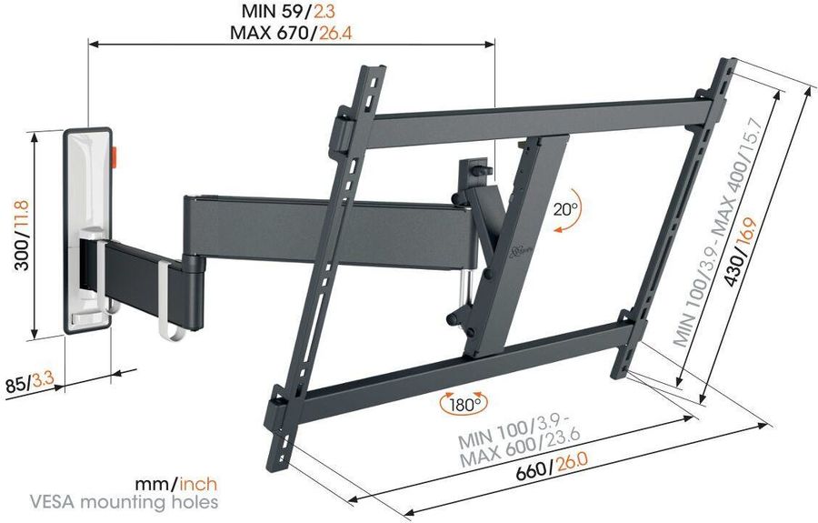 Le support mural Vogel's TVM 3642 est doté d'un long bras de 67 cm permettant d'orienter le téléviseur, et ainsi d'offrir un confort visuel optimal.