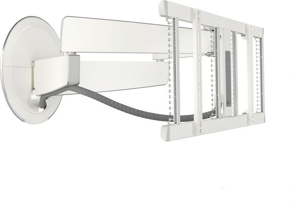 Le support TV mural motorisé Vogel's TVM 7675 est très polyvalent. Orientable à 120° degré, il vous assure de toujours bénéficier du meilleur angle de vue sur votre téléviseur. Mieux, cette large orientation permet de déjouer les reflets indésirables qui polluent la vision de l'écran. En outre, le bras extensible de 7,7 cm à 71,6 cm s'adapte à vos envies. Lors d'une séance de jeu vidéo par exemple, vous pouvez rapprocher l'écran tout en restant confortablement installé dans votre canapé.