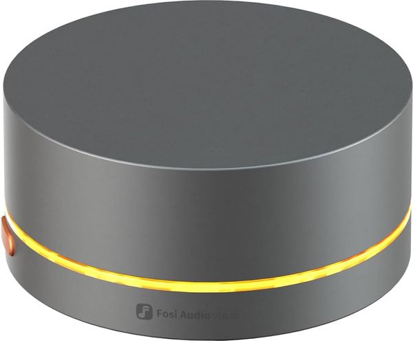La télécommande Fosi Audio VOL20 offre une solution élégante pour piloter le système audio d'une installation de bureau. Conçue dans un boîtier en alliage de zinc, elle présente une finition soignée qui s'intègre idéalement sur un bureau. Le pad supérieur est tactile, il intègre une molette infinie permettant d'ajuster finement le volume sonore. Sur les flancs se trouvent deux boutons pour sélectionner la piste et activer/désactiver les jeux de lumière.