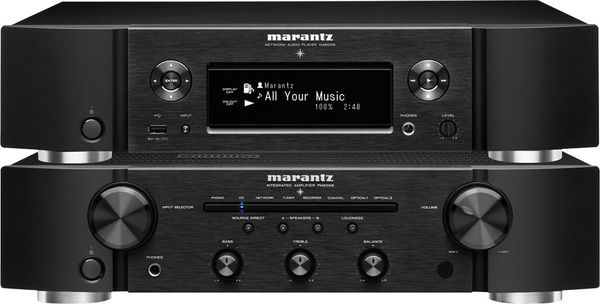 L'amplificateur hi-fi stéréo Marantz PM6006 est proposé ici avec le lecteur réseau DLNA Marantz NA6005. Une association chaudement recommandée pour profiter efficacement de la musique dématérialisée.