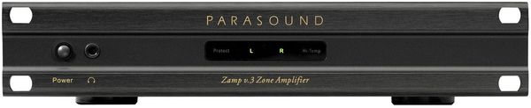 L'amplificateur de puissance stéréo Parasound Zamp v3 est un modèle compact délivrant jusqu'à 2x45 W sous 8 ohms. Pratique, il peut être bridgé afin de réunir la puissance de ses deux étages de sortie et se transformer ainsi en bloc mono. Le Parasound Zamp v3 délivre alors 90 W sous 8 ohms, une puissance plus que respectable qui permet d'envisager son intégration dans une installation Hi-Fi en bi ou tri-amplification, voire en home-cinéma. C'est d'ailleurs tout l'intérêt de cet amplificateur dont le format 1/2 rack facilite grandement son montage dans une baie. Pratique, le Parasound Zamp v3 peut être mis sous tension par le biais de son entrée trigger, ce qui permet de l'allumer en même temps qu'un préamplificateur ou amplificateur équipé de sortie trigger. L'auto-allumage sur signal audio entrant est permis, ce mode pouvant être choisi grâce à un interrupteur au dos de l'appareil.