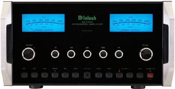 L'amplificateur intégré stéréo McIntosh M7000 intègre des composants de fabrication maison, de l'alimentation aux condensateurs, tous très largement dimensionnés, afin d'abaisser la distorsion du signal à des valeurs abyssales. Le rapport signal/bruit fleurte avec les 115 dB. La réserve de courant de cet amplificateur lui permet d'alimenter sans aucune difficulté des enceintes exigeantes, aux courbes d'impédance torturées. Le facteur d'amortissement est excellent, signe d'une haute maîtrise des mouvements de membranes de haut-parleurs. Le châssis est composé d'acier et d'aluminium, avec une structure à double épaisseur, pour garantir une inertie maximale.