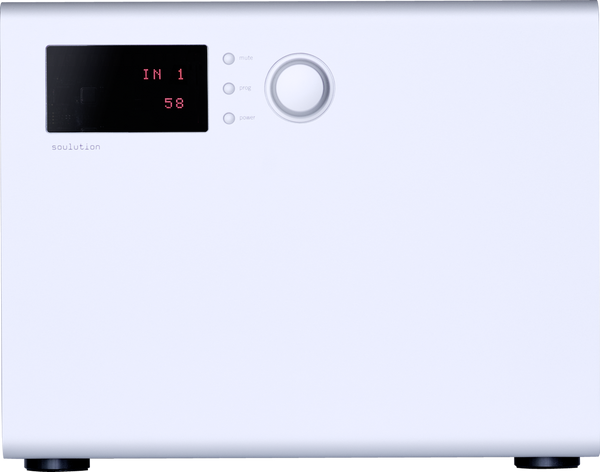 Le contrôle du volume du Soulution 530 utilise uniquement des résistances à film métallique de haute précision et à très faible bruit. Lors des changements de volume, pour bloquer les pics de commutation qui peuvent être dangereux pour les amplificateurs de puissance, le Soulution 530 est équipé d'un deuxième contrôle du volume avec PGA (amplificateur à gain programmable). Ce dernier n'est actif que pendant le processus de contrôle du volume. Semblable à un potentiomètre, il permet d'ajuster le volume en douceur, sans clics. Dès que la nouvelle valeur du niveau sonore souhaité a été sélectionnée, l'appareil revient à la gestion du volume par les résistances de précision.