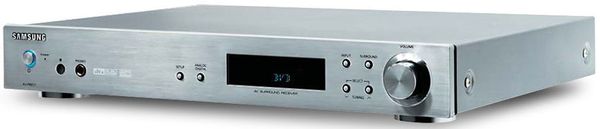 Réputé mondialement pour la qualité de ses écrans plats et de ses lecteurs DVD, Samsung se lance dans l'amplification avec cet intégré tout numérique : l'AV-R600. Disposant dans un volume réduit d'une puissance confortable de 6 x 100 W (5 x 100 W pour les satellites et 1 x 100 W pour un caisson de graves passif), il intègre également un tuner RDS avec 30 présélections. Ses entrées audio analogiques (3x RCA) et numériques (1x optique et 1x coaxiale) permettent de raccorder lecteur DVD, TNT, platine CD ou baladeur MP3. Les fonctions de décodage Dolby Digital, DTS et Dolby Prologic II sont au rendez-vous ainsi qu'un processeur DSP avec 7 modes d'ambiances pré-programmés. Son design ultra-plat facilite l'intégration et la finition silver est en accord avec les éléments séparés de la marque. Destiné au pièce comprises entre 15 et 20 m2, l'AV-R600 du constructeur coréen dispense un son spatial précis et fidèle, avec des basses soutenues pour encore plus de réalisme. Idéal pour une première installation à la fois discrète et efficace.