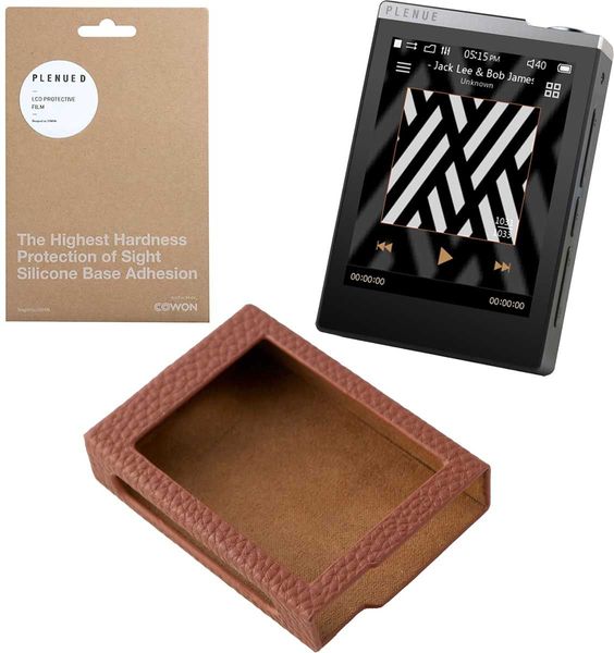 Le baladeur audiophile Cowon Plenue D dispose d'un DAC compatible 24 bits / 192 kHz, d'une mémoire interne de 32 Go extensible, des puissantes fonctions d'égalisation JetEffect 5, d'un processeur ARM à double cœur et d'un écran tactile LCD de 7 cm de diagonale. Ce modèle est adapté aux écouteurs intra-auriculaires et aux casques arceau de sensibilité élevée et impédance basse. Il est livré ici avec un étui en cuir marron et une protection d'écran.