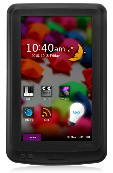 La musique en grand avec le lecteur MP3 Cowon X7 qui intègre un grand écran tactile de 10.92 cm, et pour longtemps grâce à une autonomie de 103 heures et un disque dur de 160 Go !