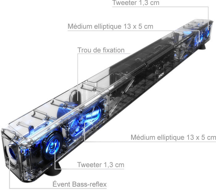 La barre de son Denon DHT-S514 est idéale pour doper le son d'un téléviseur LED, OLED ou plasma à partir de 42" (107 cm) de diagonale et se voit accompagnée d'un caisson de basses sans fil efficace et discret. L'image des téléviseurs est en effet de plus en plus belle, leur design de plus en plus plat, mais leur section audio demeure toujours aussi chétive, ce qui explique le succès grandissant des barres de son. Le modèle DHT-S514 proposé par Denon est particulièrement séduisant par ses mensurations très raisonnables, sa mise en place simple et rapide et ses prestations sonores convaincantes.