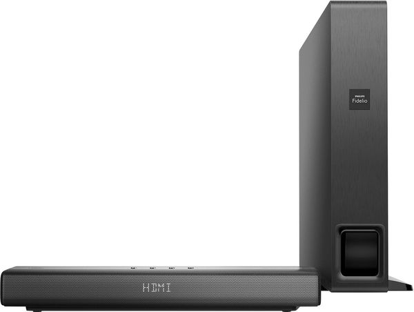 La barre de son Philips Fidelio B1 embarque une amplification de 120 watts et son caisson de basses sans fil une amplification de 200 watts.