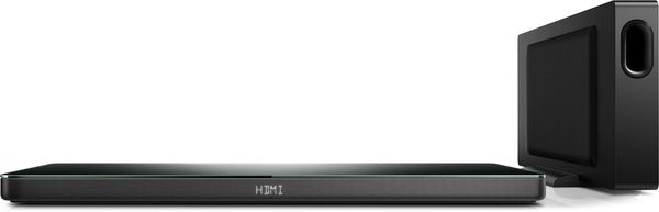 Côté amplification, Philips annonce 320 watts de puissance au total, dont 200 watts pour l'amplification du seul caisson de basses doté de deux haut-parleurs, et 6 x 20 watts pour les haut-parleurs de la base enceinte TV.