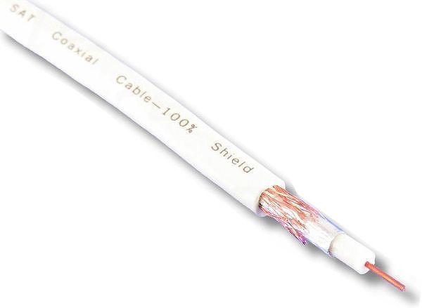 Câble d'antenne basique à la découpe, 75 ohms, nu, sans connecteur, double blindage (tresse + feuillard en aluminium), conducteur en cuivre 0,65 mm, faible atténuation : 19 db à 1000 MHz (fréquence TV), convient pour la connexion à une antenne VHF/UHF pour la réception des chaînes hertziennes, de la TNT et du câble.