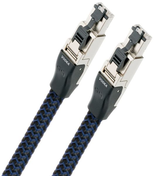 Le câble Ethernet Audioquest Vodka est un modèle haut de gamme, répondant aux exigences de la norme Cat 7. Les conducteurs et connecteurs mêlent cuivre et argent à hauteur de 10 %, afin d'offrir un débit de données optimal, et par conséquent un faible taux d'erreur. Les conducteurs du câble Ethernet Audioquest Vodka sont isolés avec du polyéthylène. Audioquest a conçu ce câble en y intégrant un blindage de qualité, le même que celui utilisé sur les câbles audiophiles. Cette technologie qui associe métal et carbone dans un tressage textile hautement résistant, est appellée Noise Dissipation System (NDS).