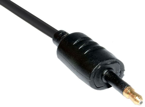 Câble optique mini-jack 3,5 mm pour relier un ordinateur portable ou un iMac avec sortie casque compatible fibre optique Toslink sur une entrée optique mini-jack.