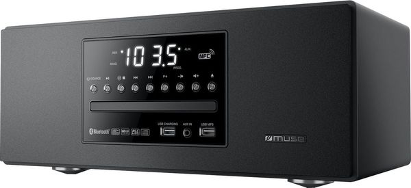 La chaîne compacte Muse M-680 BTC est un modèle stéréo compact monobloc doté d'une amplification stéréo délivrant 40 watts. Son lecteur CD intégré à tiroir motorisé prend place au centre de la façade, sous l'afficheur et les touches de contrôle. Il est compatible avec les disques du commerce mais aussi avec les CD-R/RW et les CD-MP3. Le grand afficheur LCD à caractères blancs dispose d'un réglage de l'intensité du rétro-éclairage, ce qui permet d'installer cette chaîne compacte sur une table de chevet pour se réveiller en musique, depuis n'importe quelle source connectée. La chaîne compacte Muse M-680 BTC est par ailleurs dotée d'un tuner radio FM avec 30 stations mémorisables.