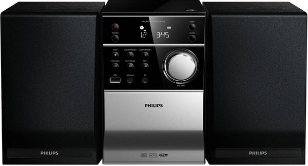 La chaîne Philips MCM 1110 regroupe ainsi un lecteur CD-MP3 compatible CD-R et CD-RW, un tuner FM avec recherche automatique et une mémoire de 20 présélections, mais également un port USB pour lire les fichiers musicaux contenus sur un périphérique de stockage. En outre, une entrée ligne en façade permet de connecter un lecteur MP3 à l'aide d'un câble mini-jack vers mini-jack fourni. Les prestations sonores sont au rendez-vous avec une puissance de 10 watts RMS qui bénéficie de l'amplification dynamique des basses et du contrôle numérique du son selon quatre ambiances (Pop, Rock, Jazz et Classique). Les fonctions de confort sont également de la partie avec la mise en veille programmable ou l'alarme selon une source au choix (radio ou CD). Enfin, l'ergonomie profite d'un écran LCD en façade ainsi que d'une télécommande.