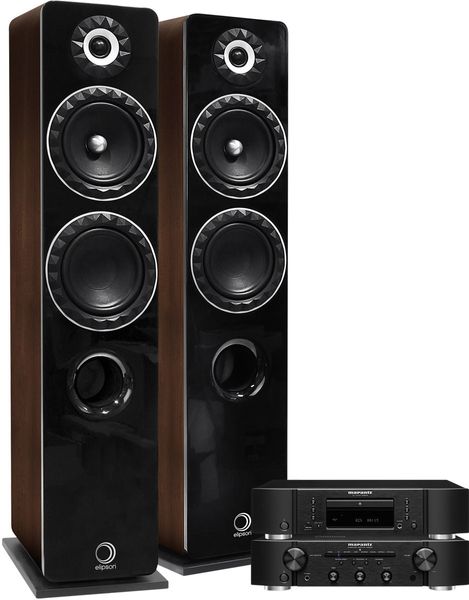 Lauréates EISA 2016-2017, ces deux électroniques haute fidélité Marantz sont ici associées à une paire d'enceintes colonne Elipson Prestige Facet 14F. La marque française a doté cette enceinte d'un haut-parleur grave et d'un haut-parleur médium-grave de 17 cm de diamètre, ce dernier étant doté d'une ogive centrale limitant les turbulences, causes de distorsions. Le tweeter est un modèle à dôme souple de 25 mm de diamètre. Ces haut-parleurs sont réalisés par un fabricant tiers selon un cahier des charges très exigeant. Exclusivité de la gamme d'enceintes Elipson Prestige Facet, une couronne en gomme synthétique taillée sur-mesure entoure chaque haut-parleur afin de limiter l'effet de baffle et les diffractions. La courbe de réponse est ainsi moins perturbée, plus linéaire, pour une écoute plus douce. L'enceinte colonne Elipson Prestige Facet 14F se caractérise par sa neutralité et sa justesse. Dénuée de toute coloration, elle délivre sa partition sans rien ajouter ni soustraire à l'enregistrement original. L'écoute révèle une sensation de douceur et de sérénité, chaque morceau étant reproduit fidèlement, avec maîtrise et sans agressivité.