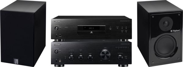 Cette chaîne Hi-Fi composée Pioneer 50-10 / Highland 4402 comprend l'amplificateur stéréo Pioneer A-50, le lecteur CD-SACD Pioneer PD-10 et la paire d'enceintes compactes Highland Audio Dilis 4402.