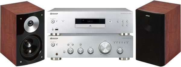 Cette chaîne hi-fi Pioneer A-PD10 / Eltax Shine 2 comprend l'amplificateur intégré Pioneer A10 Silver, le lecteur CD/SACD Pioneer PD10 Silver et la paire d'enceintes compactes Eltax Shine 2 Calvados.