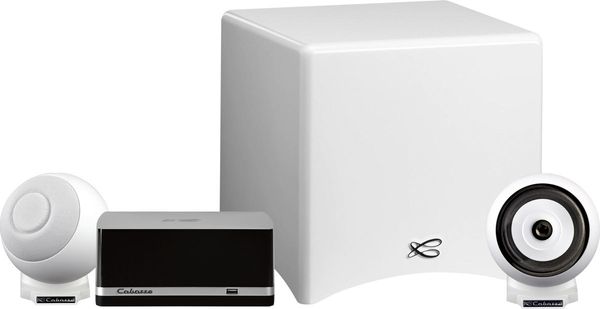 La chaîne hi-fi composée Cabasse Stream iO21 comprend l'amplificateur stéréo Cabasse Stream Amp 100, la paire d'enceintes Cabasse iO2 et le caisson de basses Cabasse Santorin 21 M2.