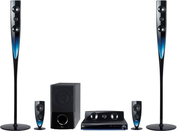 "Facile à utiliser et stylé, le LG HB954PB est un système Home Cinéma 5.1 canaux construit autour d’un lecteur de disques Blu-ray et de ses amplificateurs. L’ensemble est complété par quatre enceintes en forme de flûtes de champagne présentées en finition bleu et argent, par une enceinte centrale et un caisson subwoofer passif. Le système associe une présentation attractive et un son équilibré et détaillé. La mise au point acoustique a été finalisée par le gourou de la Hi-Fi Monsieur Mark Levinson. Il bénéficie aussi d’une installation simple et immédiate avec la connectique HDMI entrée sortie, du BD Live (Profile 2.0), du full HD 1080p à partir d’un DVD, d’une base d’accueil pour utiliser votre iPod en lecture et le recharger et de la LG Sound Gallery. Avec le HB954PB de LG, vous pouvez profiter du Blu-ray en Full HD et son surround pour un spectacle de cinéma et de musique de haut niveau de qualité, ayant lieu dans votre propre salle de séjour."