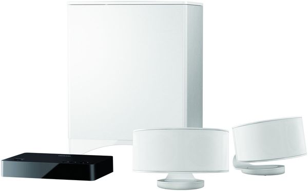 L'amplificateur délivre jusqu'à 2x20 W aux deux enceintes, équipées chacune de deux petits haut-parleurs large bande. Le caisson de basses sans fil est équipé lui d'un haut-parleur de grave de 16 cm de diamètre, orienté vers le sol, accordé par une charge bass-reflex. Son module d'amplification délivre jusqu'à 50 W, pour un son correctement charpenté et une reproduction des basses fréquences jusqu'à 40 Hz environ.