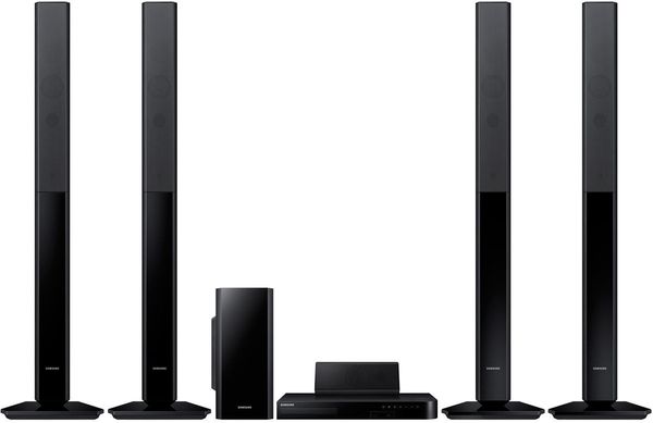 Le home-cinéma Samsung HT-H5550 comprend un amplificateur 5.1 capable de délivrer jusqu'à 500 watts en crête, quatre enceintes colonne 2 voies, une enceinte centrale 2 voies, ainsi qu'un caisson de basses passif. L'amplificateur intègre un lecteur Blu-ray compatible 3D, DVD (avec upscaling) et CD-Audio, ainsi qu'un port USB pour la lecture des clés et disques durs USB. Point fort : les formats de fichiers pris en charge sont très nombreux. Les fichiers vidéo MKV, DivX HD, VOB ou encore M2TS sont décodés jusqu'au format 1080p. Les fichiers audio FLAC, MP3, AAC, WMA, MP3 ou encore APE et AC3 sont également lus (16 bits / 48 kHz max.). Évidemment, les formats audio multicanaux tels que le DTS HD Master audio ou Dolby True HD sont pris en charge lors de la lecture de disques Blu-ray.