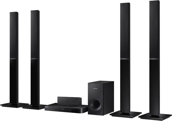 Le home-cinéma Samsung HT-J4550 comprend un amplificateur 5.1 capable de délivrer jusqu'à 500 watts, quatre enceintes colonne 2 voies, une enceinte centrale 2 voies, ainsi qu'un caisson de basses passif. L'amplificateur intègre un lecteur Blu-ray compatible 3D, DVD (avec upscaling) et CD-Audio, ainsi qu'un port USB pour la lecture des clés et disques durs USB. Point fort : les formats de fichiers pris en charge sont très nombreux. Les fichiers vidéo MKV, AVCHD, AVI ou encore WMV sont décodés jusqu'au format 1080p. Les fichiers audio FLAC, MP3, AAC ou encore WMA sont également lus. Évidemment, les formats audio multicanaux tels que le DTS HD Master audio ou Dolby True HD sont pris en charge lors de la lecture de disques Blu-ray.
