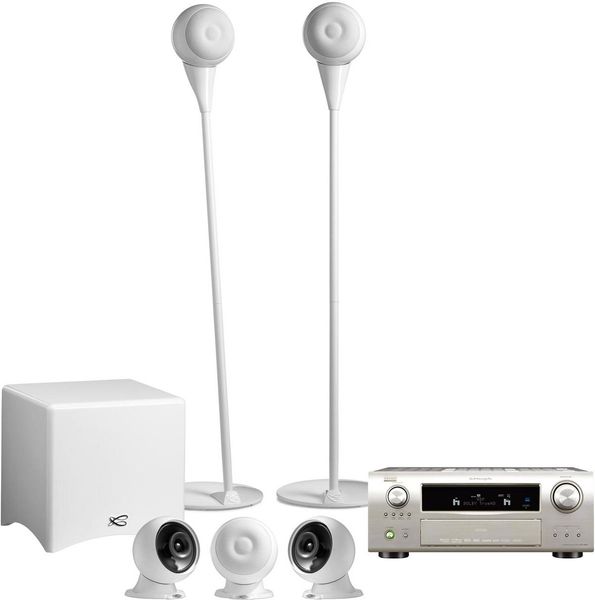 Chaîne home-cinéma Denon / Cabasse comprenant l'amplificateur audio-vidéo AVR-2809 Premium Silver et le pack d'enceintes 5.1 Eole 2 Blanc