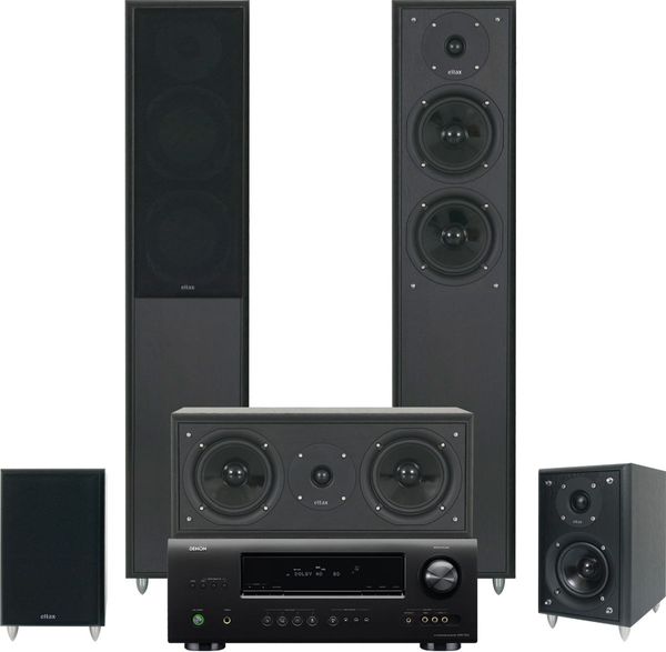 Cette chaîne home-cinéma composée comprend l'amplificateur Denon AVR-1312 et l'ensemble 5.0 Eltax Monitor 91 HC.Denon propose avec l'AVR-1312 un premier amplificateur audio-vidéo assez surprenant. A contre-pied de la concurrence, Denon n'a pas bardé cet AVR-1312 de fonctionnalités en vogue et s'est appliqué à offrir une amplification de qualité, basée sur des composants discrets. Le son, rien que le son, en quelque sorte.Caractéristiques