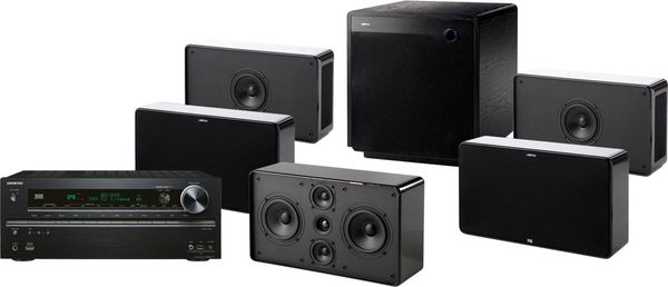 La chaîne home-cinéma Onkyo 717 / Jamo D500 comprend l'amplificateur home-cinéma Onkyo TX-NR717, et le pack d'enceintes JAMO D500 THX.