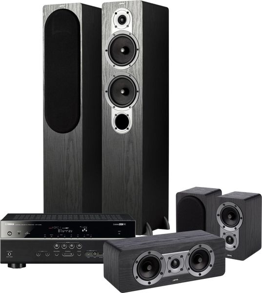 La chaîne home-cinéma Yamaha 4068 / Jamo 426 comprend l'amplificateur Yamaha HTR-4068 et le pack d'enceintes 5.0 Jamo S426 HCS3 constitué de la paire d'enceintes colonne Jamo S426, de l'enceinte centrale Jamo S400 CEN et de la paire d'enceintes surround Jamo S420 SUR.