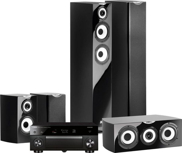 La chaîne home-cinéma Yamaha 1030 / Cabasse MC40 comprend l'amplificateur audio-vidéo Yamaha RX-A1030, les enceintes colonne Cabasse MC40 Java Piano, l'enceinte centrale Cabasse MC40 Cabrera et les enceintes compactes surround Cabasse MC40 Minorca Piano.