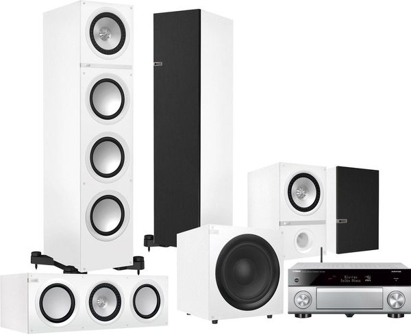 La chaîne Yamaha RX-A1060 / KEF Q700 System 5.1 est composée de l'amplificateur home-cinéma Yamaha RX-A1060 et du pack d'enceintes home-cinéma KEF Q700 System 5.1 comprenant la paire d'enceintes colonne KEF Q700, la paire d'enceintes compactes KEF Q100, l'enceinte centrale KEF Q200C et le caisson de basses KEF Q400B.