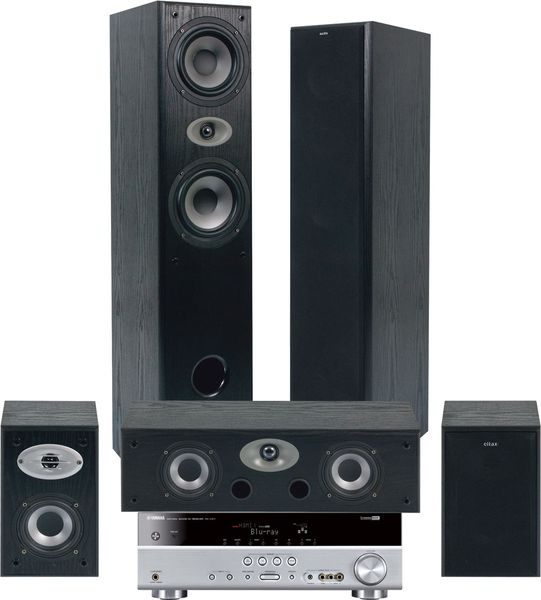 Cette chaîne composée home-cinéma comprend l'amplificateur Yamaha RX-V371 et le pack d'enceintes Eltax Experience 5.0.Le Yamaha RX-V371 est le premier modèle de gamme 2011 d'amplificateurs home-cinéma développée par le constructeur japonais. Il offre une réserve de puissance confortable, puisqu'il peut délivrer 100 watts à chacun des 5 canaux intégrés. Son prix, ses nombreuses fonctionnalités, telle que la calibration YPAO et le décodage audio HD en font un véritable incontournable. Doté de 4 entrées HDMI 1.4 (retour audio et 3D), le Yamaha RX-V371 vous permettra de connecter tous vos appareils. Lecteur Blu-ray, boîtier internet (Box), console de jeux : vous pourrez profiter pleinement de toutes vos sources en 5.1, grâce à cet amplificateur fiable et performant. Assurant une prise en charge des traitements vidéos majeurs (Deep Color, x.v.Color, HDMI 1080p...), il vous garantit des séances cinéma exceptionnelles. Afin d'apprécier avec panache les bandes son Blu-ray et DVD, le RX-V371 propose des caractéristiques audio impressionnantes pour un appareil de cette gamme. Avec ses convertisseurs Burr-Brown 192 kHz / 24 bits, ses 4 entrées optiques et coaxiales ou sa pré-sortie pour caisson de grave, il est certain que vous ne manquerez de rien ! Les adeptes du MP3 disposent même d'un mode d'amélioration des fichiers compressés, pour redonner de l'ampleur à leurs musiques fétiches. On relèvera la possibilité de connecter des modules optionnels sur le port Dock de cet amplificateur : le récepteur Bluetooth YBA-10 ou la station d'accueil pour iPod / iPhone YDS-12. Enfin, le RX-V371 intègre le mode de calibration automatique YPAO. Grâce à son microphone, cet amplificateur saura tirer le meilleur parti de votre pièce d'écoute et se régler rapidement.Caractéristiques