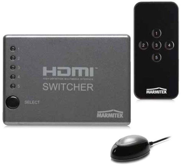 Le pack Marmitek Connect 350 comprend un boîtier HDMI, une télécommande et un récepteur infrarouge. Ce système multi-prises HDMI vous permettra de rassembler jusqu'à 5 sources HDMI, avec 1 seul câble sortant pour relier votre téléviseur haute-définition, cela sans perte de signal pour une image garantie HD jusqu'à 1080p. Il suffit de brancher votre TV en HDMI sur la sortie et de connecter vos sources aux entrées HDMI (5 en tout) du boîtier. Il peut s'agir d'un lecteur DVD ou Blu-ray, d'une Set-top-box, d'une console de jeux dernière génération, etc. Avec la télécommande, vous pouvez désormais sélectionner la source HDMI qui alimente votre téléviseur, et passer de l'une à l'autre. Pratique ! Et avec le récepteur infrarouge indépendant, vous êtes sûr de toujours avoir le boîtier à portée de clic. Pour ne plus avoir à brancher et débrancher vos différentes sources HDMI sur votre téléviseur, optez pour une solution multi-prises définitive avec le commutateur Marmitek Connect 350.
