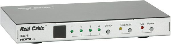 Le HDS-41 est un sélecteur audio-vidéo doté de 4 entrées et une sortie HDMI 1.3. Avec lui, vous pourrez ainsi facilement distribuer l'image de votre lecteur Blu-ray, celle de votre console de jeux vidéo dernière génération et celle de vos décodeurs TVHD vers votre écran LCD ou plasma ou vers votre projecteur vidéo, sans aucune perte de qualité grâce à l'amplificateur de signal. Certifié HDMI 1.3, le HDS-41 est compatible avec le protocole de contrôle CEC, avec les normes Deep Color et x.v.Color ainsi qu'avec le système de fixation propriétaire SafeLock. Très simple à installer et à utiliser, ce répartiteur HDMI Real Cable est livré avec une télécommande qui permet de sélectionner à distance vers quel diffuseur envoyer le signal.